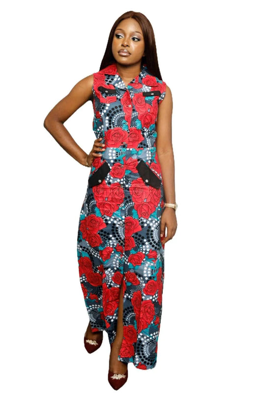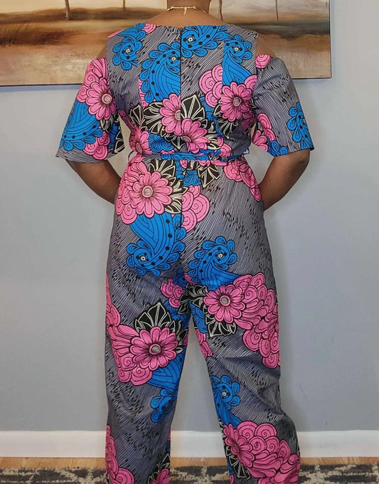 Women African Clothing|African Print Jumpsuit Multicolor-Floral