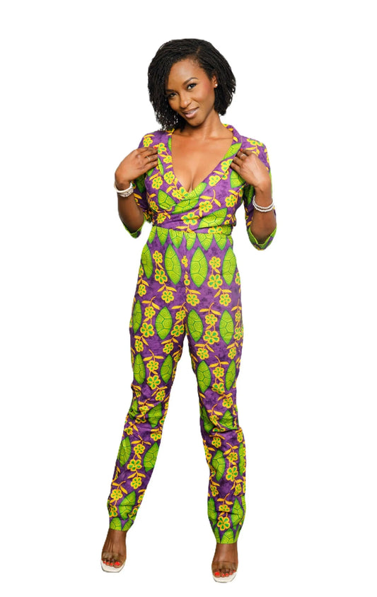 Women African Clothing|African Print Jumpsuit Multicolor-Green