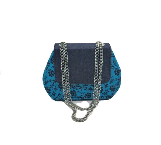 African Accessories Ummita Chic Ankara and Denim Handbag Blue- African Print