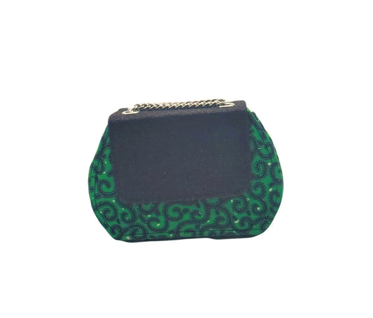 African Accessories Ummita Chic Ankara and Denim Handbag Green - African Print