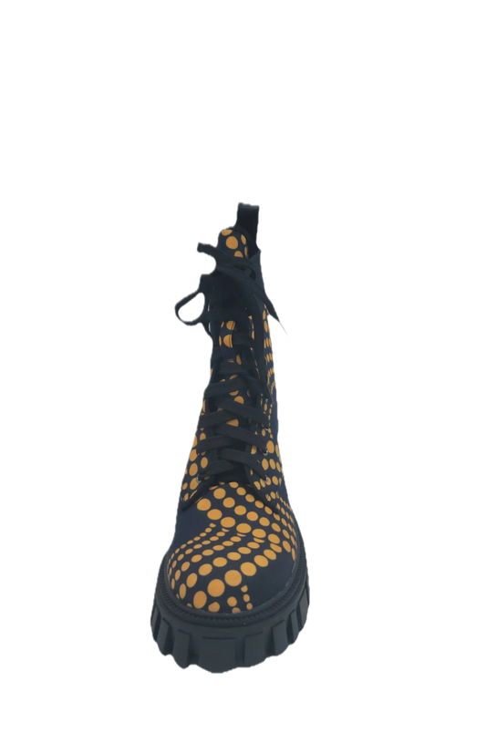 African Accessories, African shoes-Ayman African Print Martin Boots-Black and YellowRegular price $159.99 USDRegular priceUnit price per-
